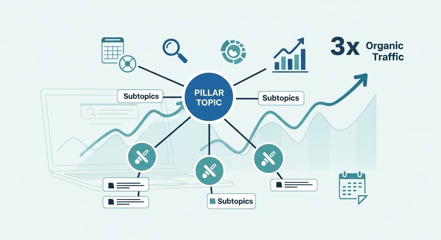 トピッククラスター戦略を成功させるには、系統立てた実行手順が不可欠です。SEO対策の最前線で結果を出してきた経験から、有機流入を実際に3倍に増やした具体的な7ステップをご紹介します。